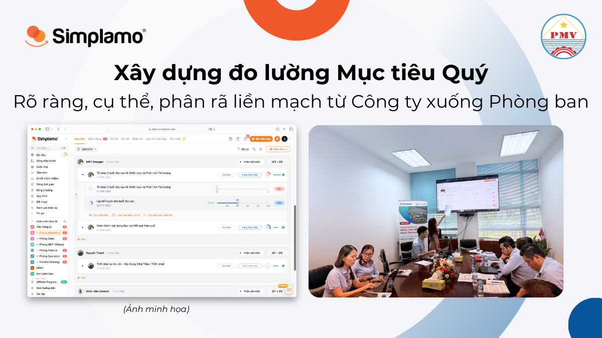 Simplamo đã giúp Phú Mỹ Vinh xây dựng hệ thống Mục tiêu từ cấp công ty đến phòng ban một cách đồng bộ và minh bạch, đảm bảo mọi hoạt động đều hướng về chiến lược chung.
