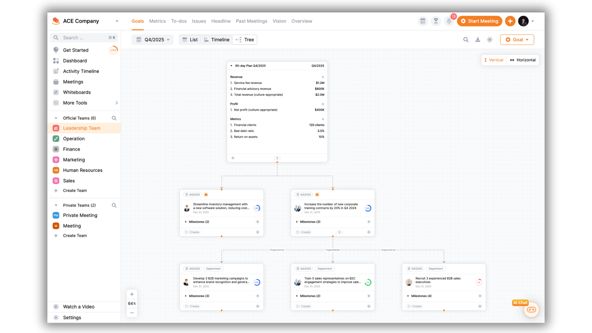 • Đảm bảo sự liên kết Chiến lược: QTHS giúp chuyển hóa các Mục tiêu lớn của CEO và Ban lãnh đạo thành các Mục tiêu cụ thể, đo lường được (KPIs/OKRs) cho từng phòng ban và cá nhân. Đảm bảo mọi nỗ lực đều hướng về cùng một đích.
