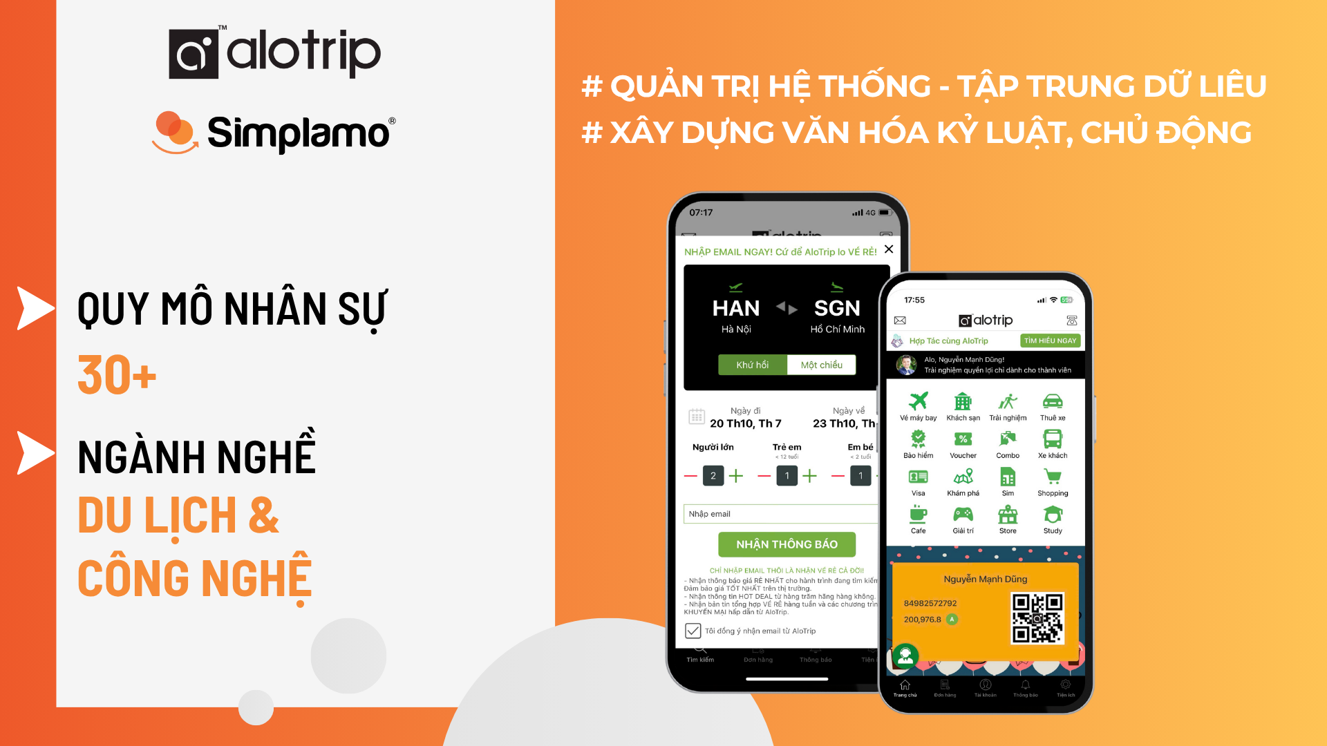 Bắt đầu áp dụng Simplamo từ ngày 22.07.2025, trải qua hành trình 3 tháng với sự đồng hành hỗ trợ đào tạo từ chuyên gia Simplamo, AloTrip đã nâng cấp mô hình quản trị thành công: tập trung, chủ động & kỷ luật như kỳ vọng từ anh Dũng.