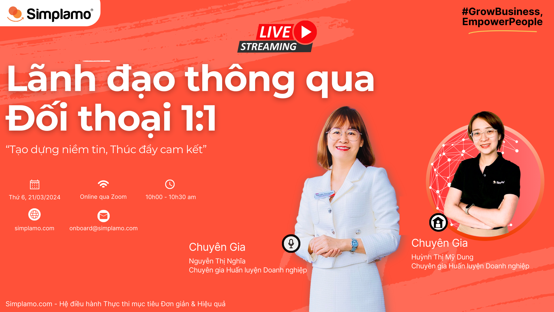 Vì Bạn còn cơ số mục tiêu Quý 2 nhưng chưa biết nên làm sao, bắt đầu như thế nào?Còn chần chừ gì mà không nhanh tay đăng ký Webinar “Từ Ý Tưởng đến Hành Động – Bí Quyết Phân Rã Mục Tiêu và Tạo Động Lực” cùng Simplamo để khai thông mọi “ngập lụt” cản trở hành trình thực thi mục tiêu của bạn.